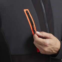 Tessuto principale: Softshell 94% Poliestere, 6% Elastane 260 gr/m²; tessuto frontale: 100% Poliammide, 100 gr/m² + membrana in TPU.
