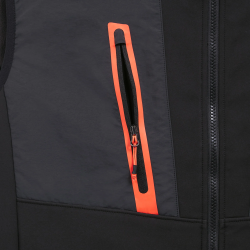 Gilet bimateriale softshell più Nylon con taglio ergonomico.