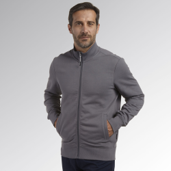 Felpa full zip in poliestere e cotone, garzata.