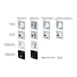 È disponibile sia per porte scorrevoli ad anta unica sia ad anta doppia, in due modelli: Rotonda e Quadra, nella versione con serratura, senza serratura, con serratura con chiave pieghevole e con foro a cilindro europeo.
