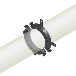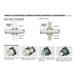 Collare per la sigillatura esterna di attraversamenti di tubazioni in PVC, PE, PP e fasci di cavi elettrici costituiti da guscio metallico, in modo da poter essere facilmente posizionati intorno al tubo/fascio da proteggere.