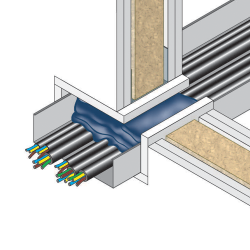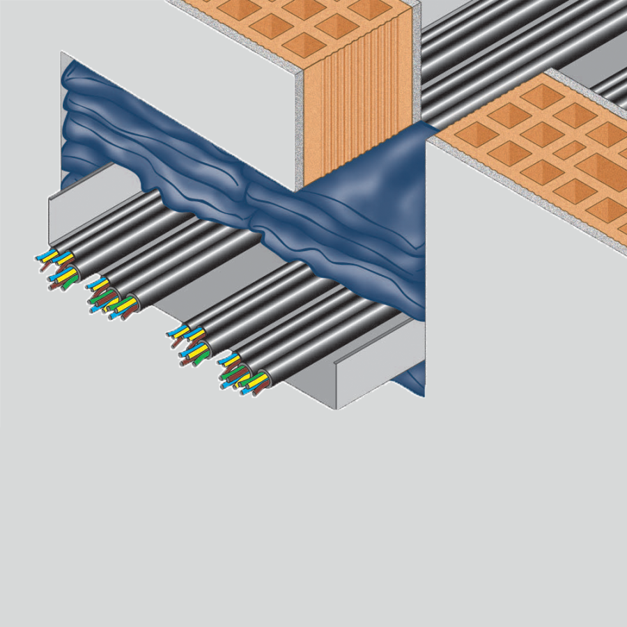 GLOBAL BUILDING GB-S Sacchetto per passaggio cavi elettrici con resistenza al fuoco EI 120 certificata su pareti in muratura o cartongesso.
