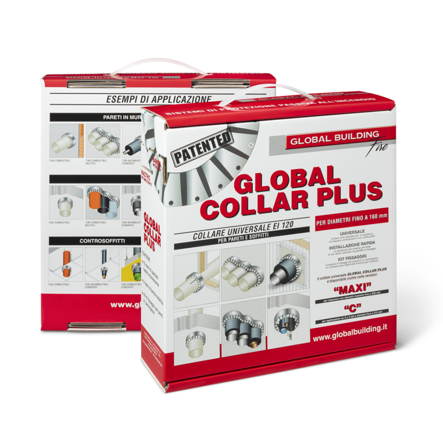 GLOBAL BUILDING GLOBAL COLLAR PLUS è l'unico collare senza alette di fissaggio, garantendo pertanto minimi ingombri, che è protetto da brevetto.