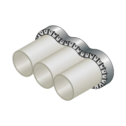 Il collare universale GLOBAL COLLAR PLUS è costituito da un nastro intumescente avvolto in più strati intorno alla tubazione e da un lamierino metallico che lo avvolge e fissa l'intero sistema al supporto.