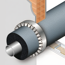 È necessario misurare il diametro della tubazione da proteggere comprensiva di isolamento ed avvolgere il nastro intumescente nel numero di strati previsto (vedi tabella) fissandolo con nastro adesivo; spezzare il lamierino metallico della lunghezza indicata per ciascun diametro (vedi tabella) e avvolgerlo attorno alla guarnizione intumescente serrando le due estremità con vite autoperforante.