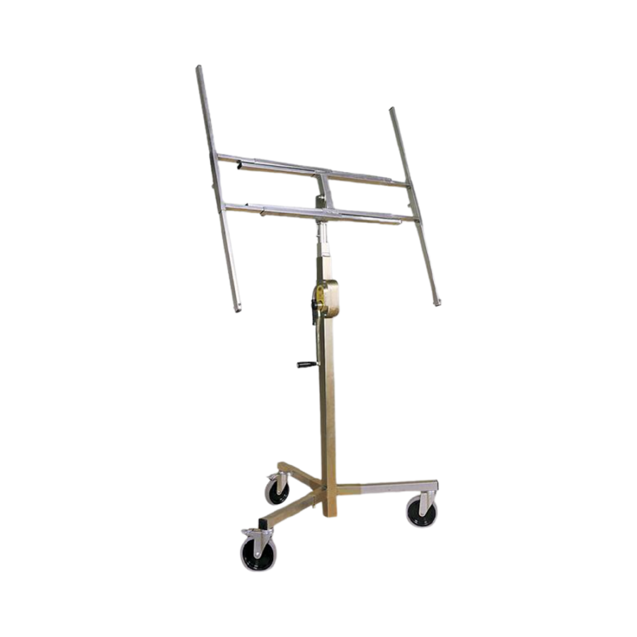 Sollevatore di pannelli in cartongesso. Funzionamento meccanico a elevazione manuale.