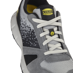 Calzatura di sicurezza bassa S1PS in pelle bovina scamosciata e tessuto poliestere.