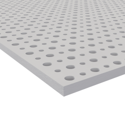 Lastra forata con nucleo in gesso speciale costituito da una miscela di grafite con elevata conducibilità termica ed effetto depurazione dell’aria. Si caratterizza per il rivestimento di carta di colore avorio sul davanti e di colore rosa sul retro dove può essere applicato uno strato in feltro bianco o nero.