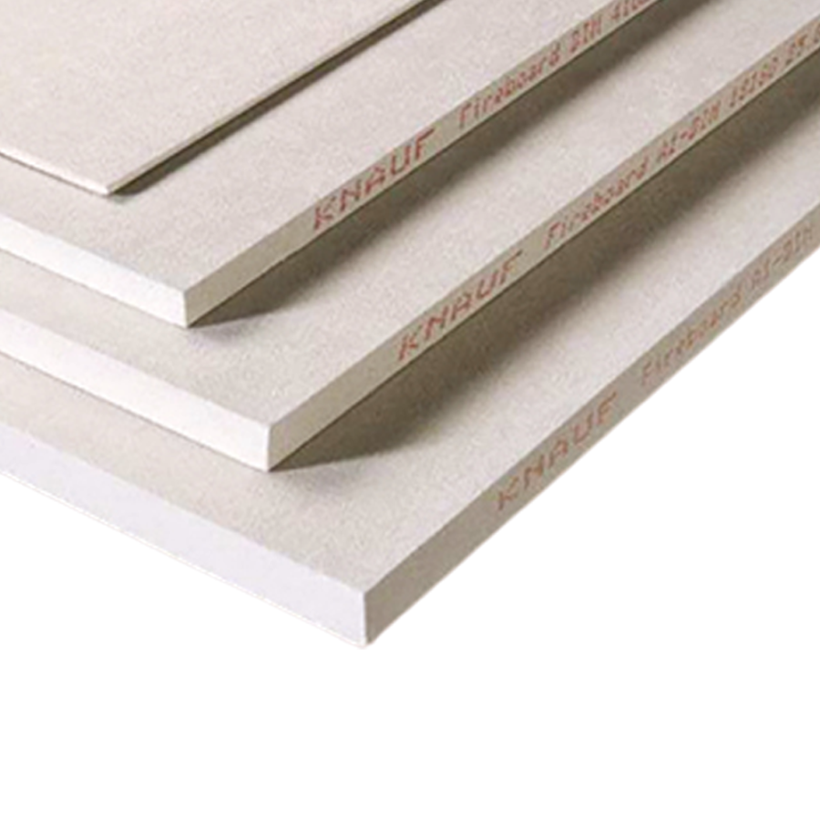 KNAUF FIREBOARD Lastra in gesso rinforzato, con bordi privi di smussature, composta da un nucleo di gesso rivestito con un velo di speciali fibre di vetro che crea una barriera idonea a impedire cedimenti e rotture anche sotto l’azione del fuoco.