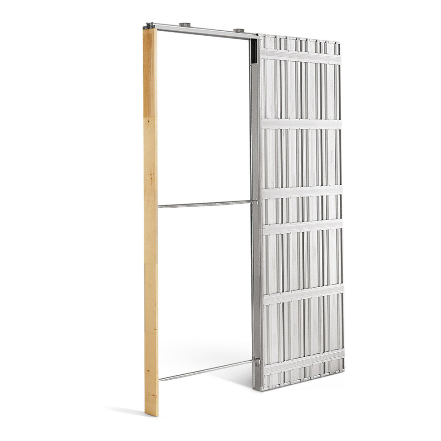 Destinato per parete interna divisoria in cartongesso formata da profili di mm 75/100 con spessore complessivo finito di mm 100/125, ed è idoneo per l'alloggiamento all’interno di una porta (modello anta unica) scorrevole, rigida, a scomparsa, di peso massimo di 120 Kg.