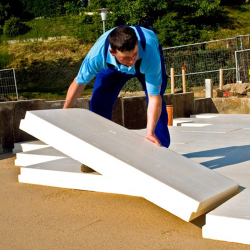 Pannello di polistirene estruso URSA XPS, superfici lisce e bordi laterali a battente. Resistenza alla compressione a breve termine: 300 kPa.
