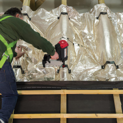 ACTIS TRISO-TOITURE è una soluzione di isolamento certificata UNI EN 22097:2023 che assicura isolamento termico sia invernale che estivo con elevate prestazioni termiche R ≥ 6,45 m² K/W, isolamento acustico e tenuta all’acqua e all’aria.