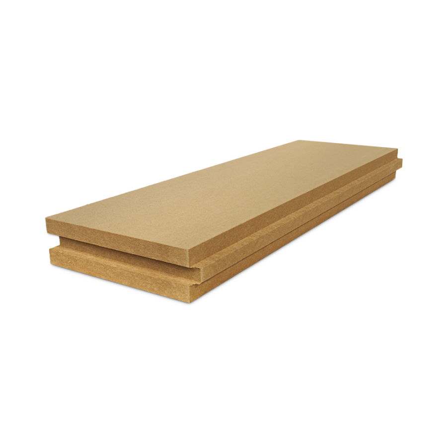 Pannello isolante termico stabile in fibra di legno naturale per applicazioni in copertura e per pavimenti, disponibile negli spessori da 20 a 200 mm con densità di ca.160 kg/m³.