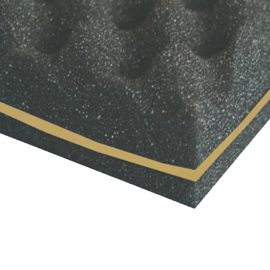 NDA AKUSTIK® - GUM FOAM Pannello acustico fonoisolante e fonoassorbente in poliuretano espanso bugnato con interposto strato di EPDM (gommapiombo).