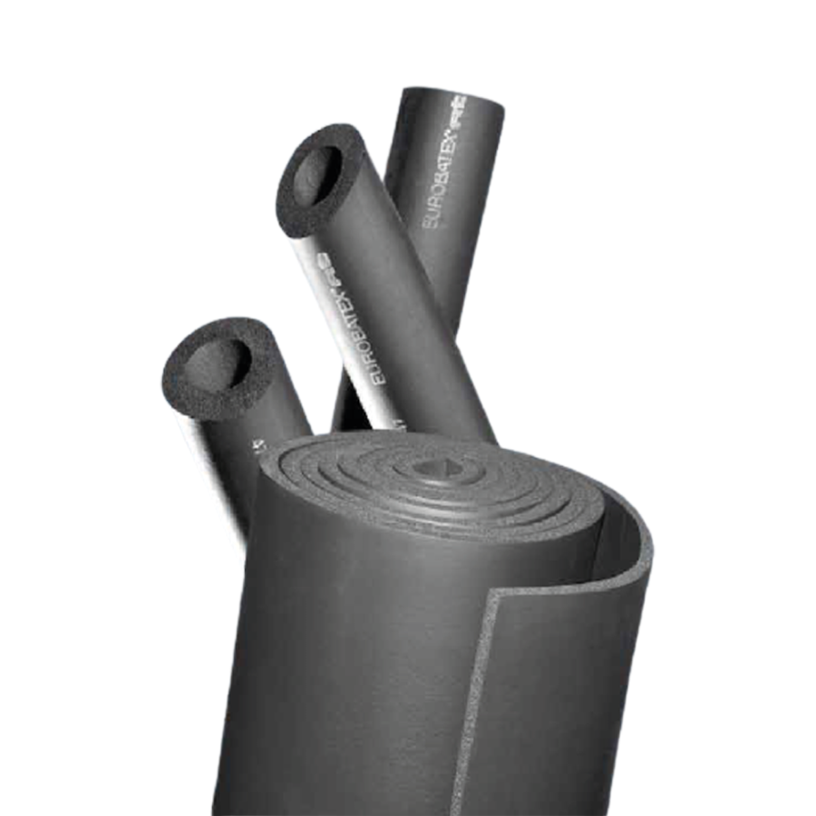 EUROBATEX® AT Materiale isolante flessibile in elastomero estruso ed espanso (FEF) prodotto senza l’impiego di CFC, HCFC e conformemente a quanto previsto dalla Norma Europea EN 14304.