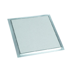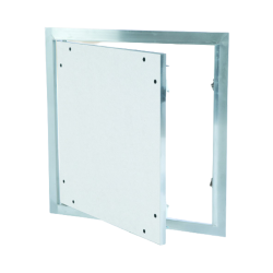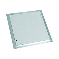 La botola d'ispezione è composta da profili in alluminio con sportello non estraibile, lastra di gesso rivestito impregnato idrorepellente da 12,5 mm, 15 mm o 25 mm e da due o più chiusure a scatto.