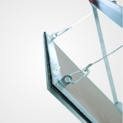 La botola viene fornita con uno o più cavetti di sicurezza e moschettone da riagganciare dopo ogni apertura dello sportello in modo da evitare incidenti.