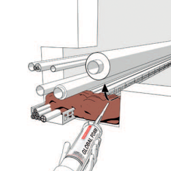Schiuma ad elevato potere di espansione per la compartimentazione di attraversamenti di cavi elettrici, cavi per telecomunicazioni, fibre ottiche, tubi combustibili e incombustibili su pareti in calcestruzzo, cemento poroso o muratura; pareti leggere (in cartongesso) e solai. Cartucce da 380 ml.