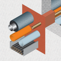Attraversamenti multipli (cavi elettrici, cavi per telecomunicazioni, fibre ottiche, tubi combustibili coibentati e non coibentati, tubi incombustibili coibentati e non coibentati)