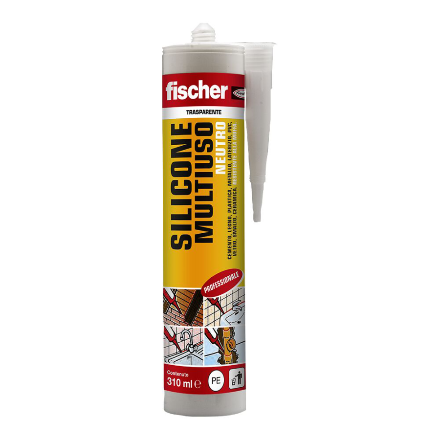 FISCHER SN sigillante siliconico multiuso neutro professionale a base alcolica per applicazioni in ambienti interni ed esterni.
