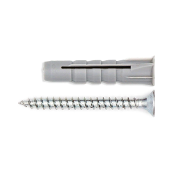 Tasselli con vite, misura 6x30 mm colore grigio. Ideali per mattoni pieni e forati. Cod. 531386. Colore Grigio. Confezione da 250 tasselli + 250 viti