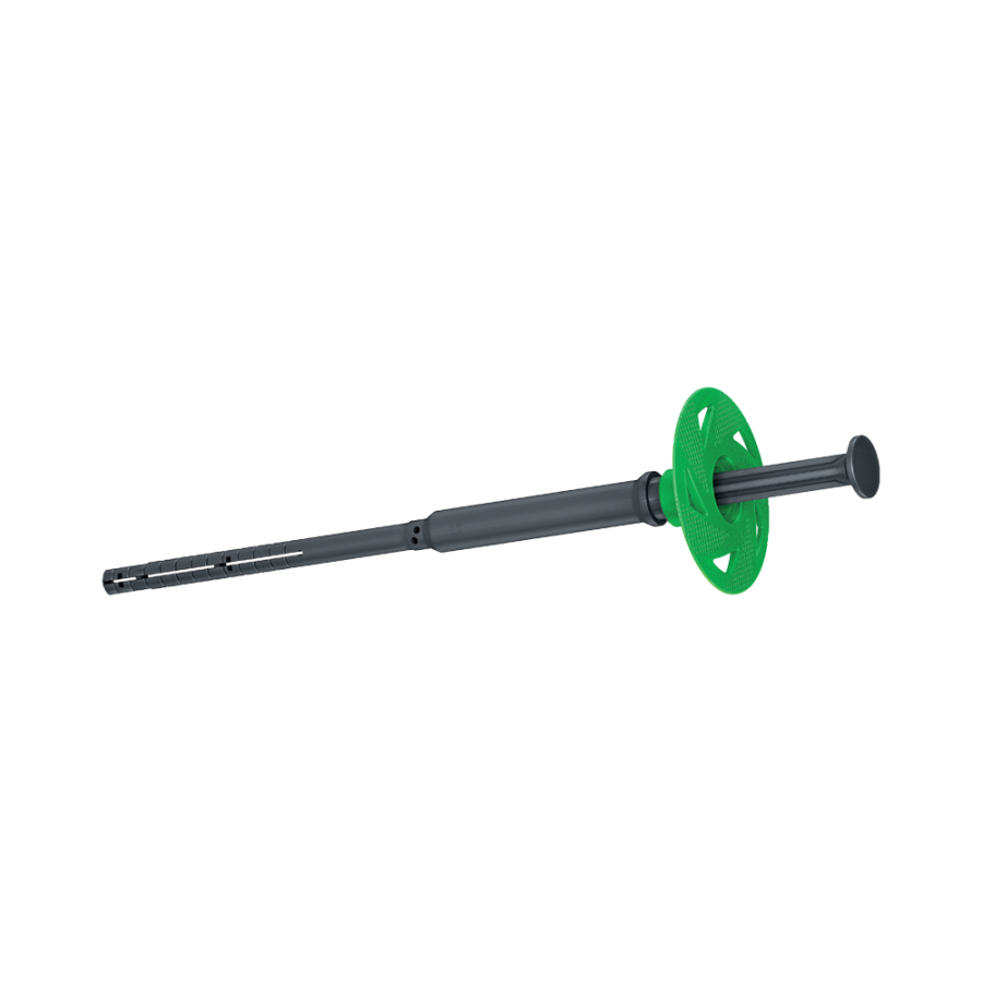 Il tassello è dotato di piattello basculante per un perfetto posizionamento a filo (scorrimento piattello), tale caratteristica gli consente di adattarsi facilmente alla planarità dell’isolante e a correggere eventuali errori di posa del tassello stesso.