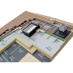 La funzione principale per cui sono nate le membrane ad alta traspirazione si identifica nella protezione dell’edificio e del pacchetto coibente dalle infiltrazioni d’acqua che dovessero provenire dalla copertura definitiva (es. tegole, coppi, lastre, lamiere, ecc.) o dai suoi punti critici (es. camini, finestre, compluvi, ecc.).