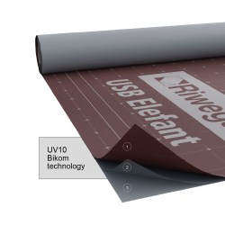 Il film UV 10 PP Plus, abbinato ad un trattamento stabilizzante ai raggi UV praticato sul tessuto non tessuto superiore (corrispondente circa al 5% del peso del tessuto), rendono USB Elefant una membrana stabile all’esposizione ai raggi UV per il tempo necessario alla posa della copertura definitiva.